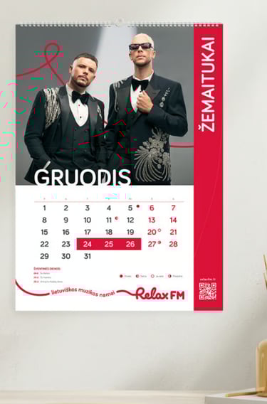 RELAX FM kalendorius - puiki dovana šeimos nariams, draugams, kolegoms ar sau. Jis tikrai papuoš Jūsų namus ar darbo vietą. Subtilaus, minimalistinio dizaino kalendorius puikiai tiks bet kokiame interjere ir džiugins visus 2026-uosius.